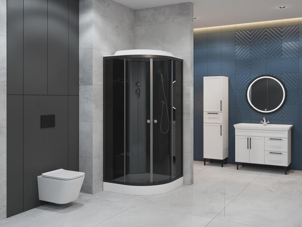 ДК EvaGold полукруг T901BB (90*90, низ.под., тонир. стек., черн. стен., черн. матовый проф. 3к.)