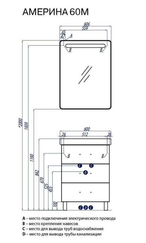 АМЕРИНА 60 М Тумба б/чаши бел 1A168901AM010 AQUATON
