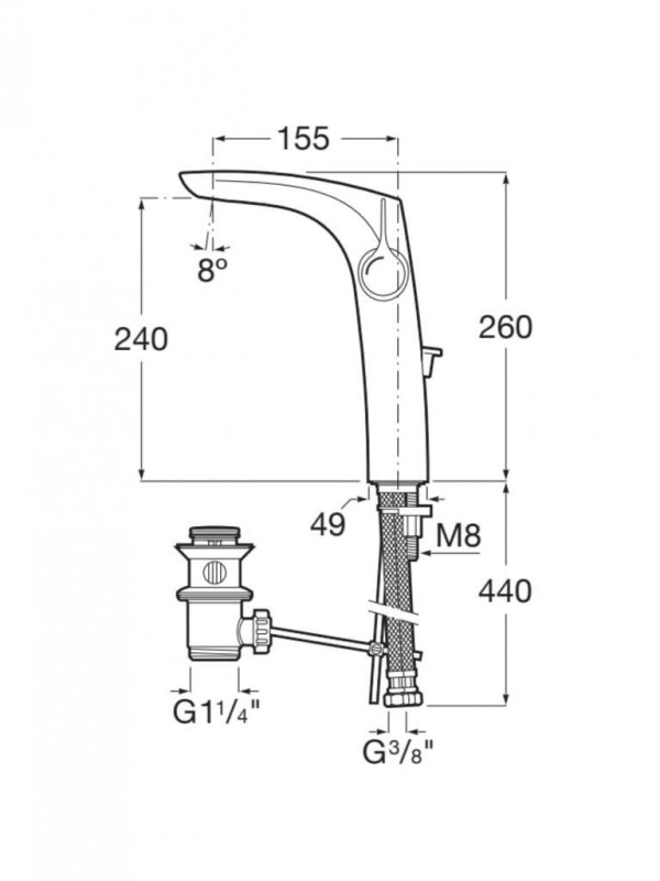 Смеситель для раковины Roca INSIGNIA, высокий, с донным клапаном