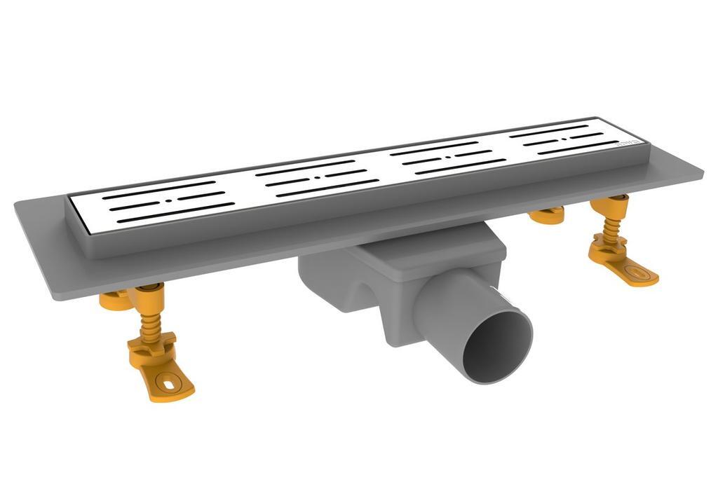 Душевой канал с решеткой из нерж. стали, с сухим клапаном, прямоугольный, с площадкой под керамическ