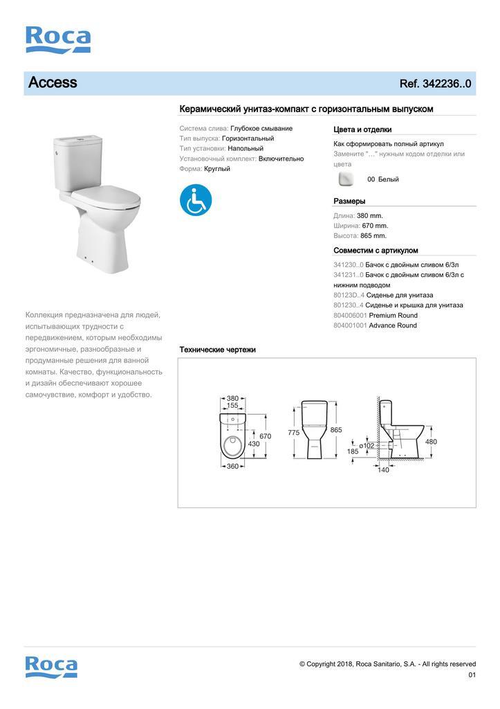 Чаша Roca Access напольная 670, для людей с огр. возможностями 342236000